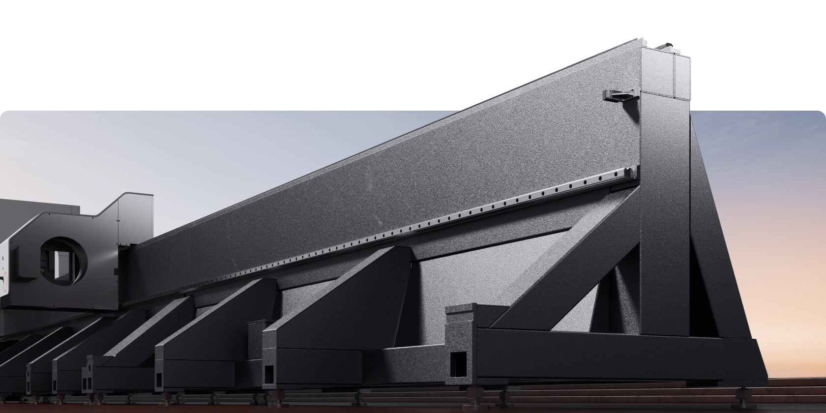 T型构造的高强度钢制床身,扎实稳重。低重心设计,稳定性提升28%,刚性提升32%,有效减少加工震动,为稳定加工保驾护航。